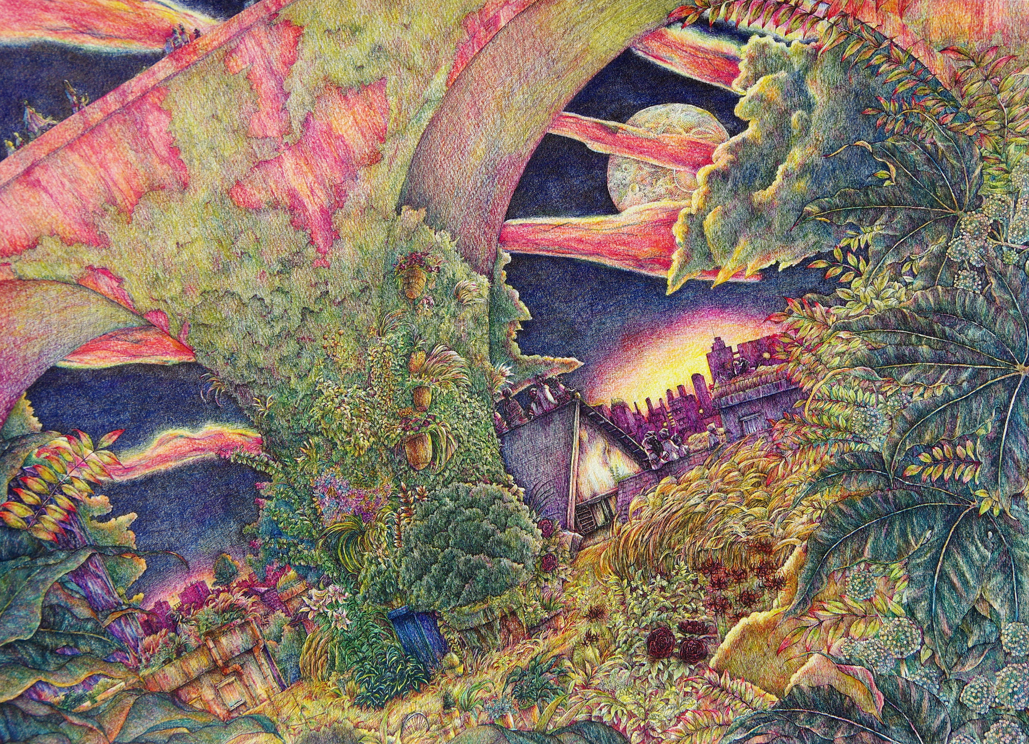 その陸橋の下は、様々な住民たちが自分のとっておきの植物をこっそり持ち寄った植物園。 ここにたどり着ける人は少ないらしい。 ここでは時間が歪んでいるのか、まったく違う季節に咲く花が同時に咲いている。